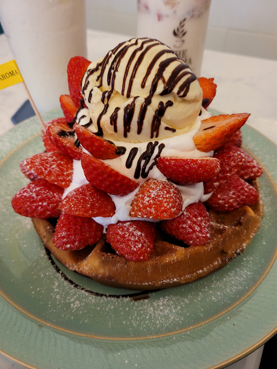 딸기와 함께 먹을 수 있는 생크림 딸기 와플을 찾아서 왔죠 ㅎㅎ